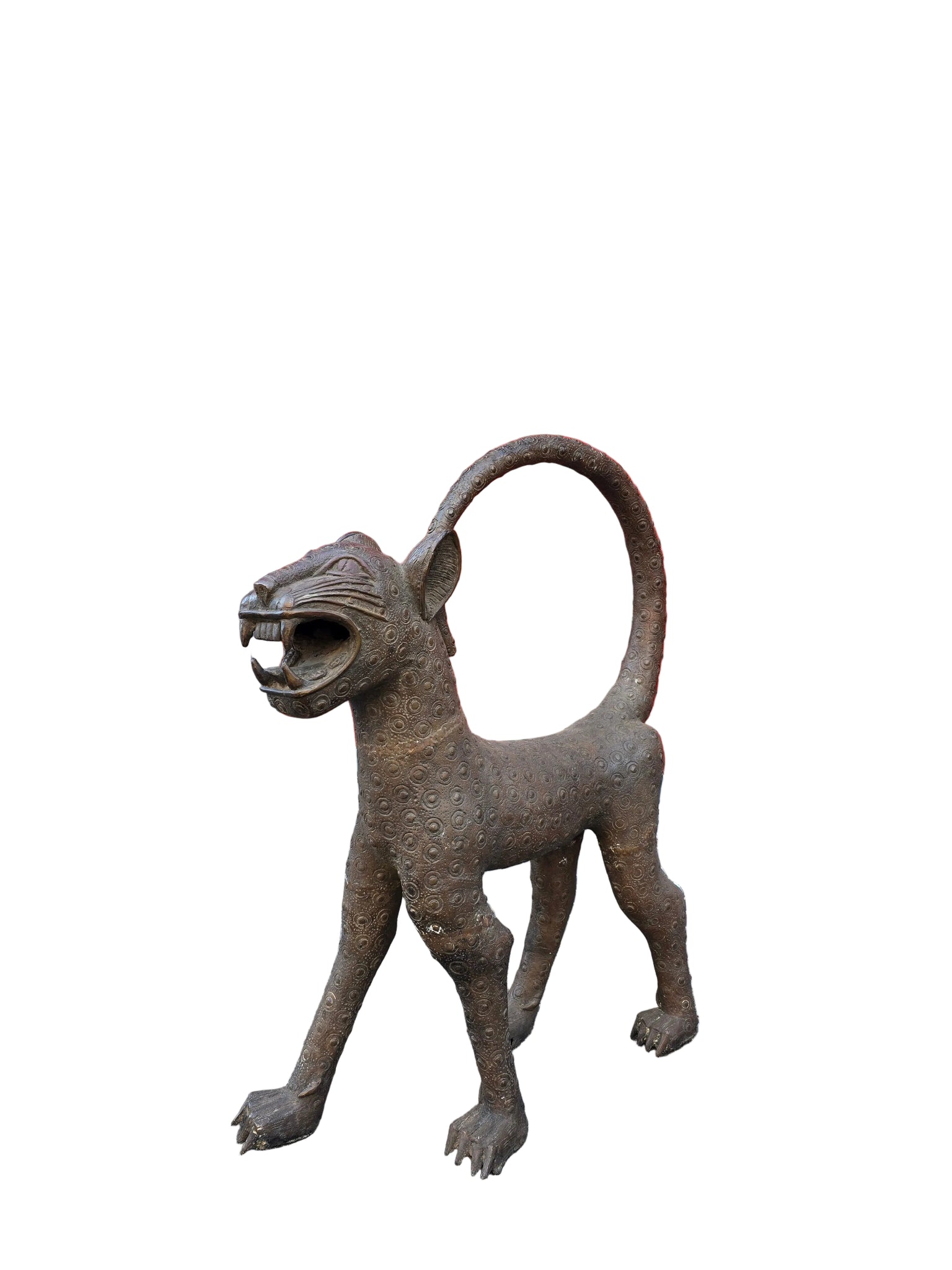 This impressive sculpture depicts a leopard, one of the most powerful and symbolic animals of the Kingdom of Benin, and originates from ancient Benin City, the historic capital of this renowned African empire (present-day Nigeria).