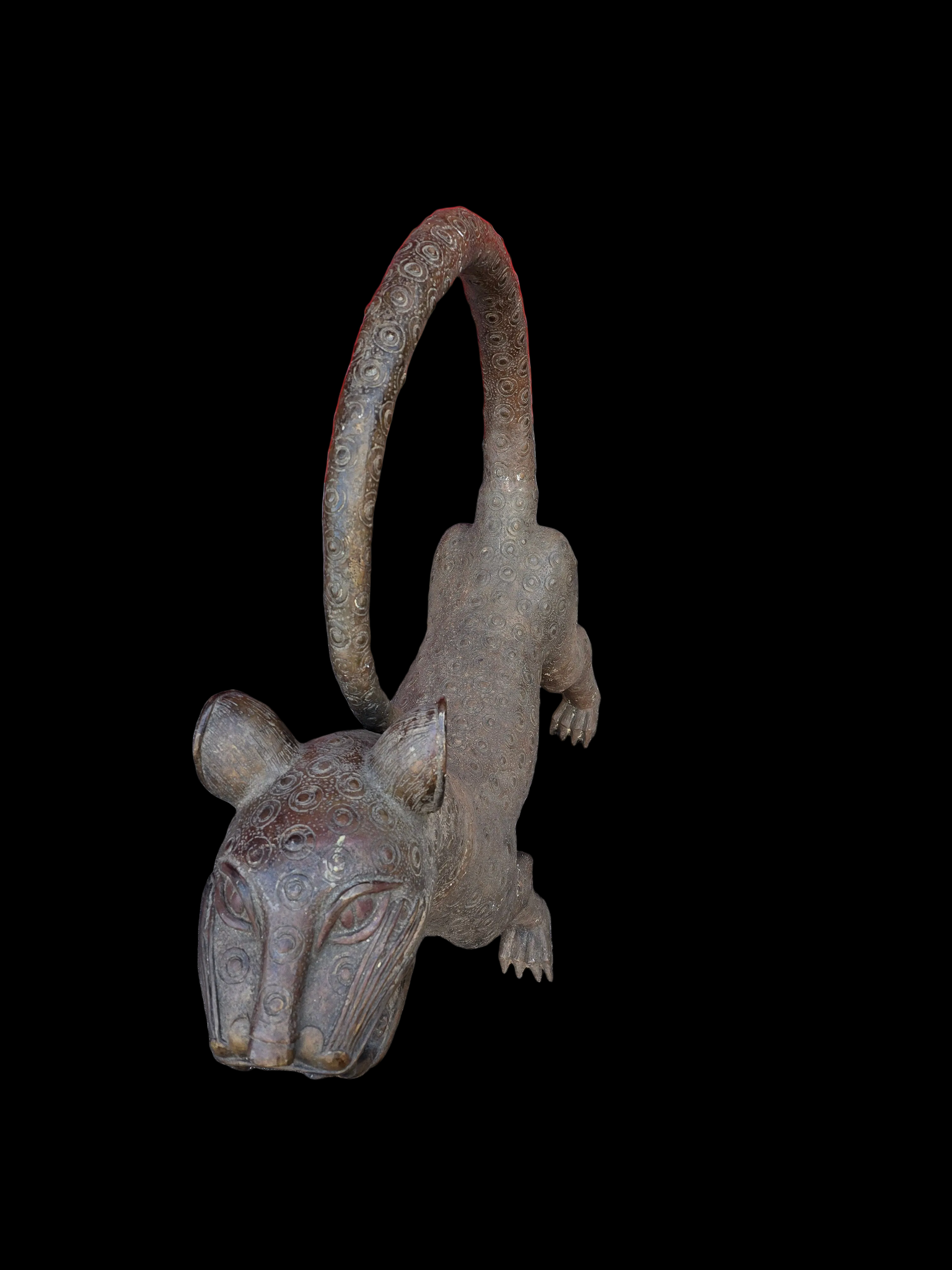 Léopard royal du Royaume du Bénin – sculpture cérémonielle en bronze à la cire perdue