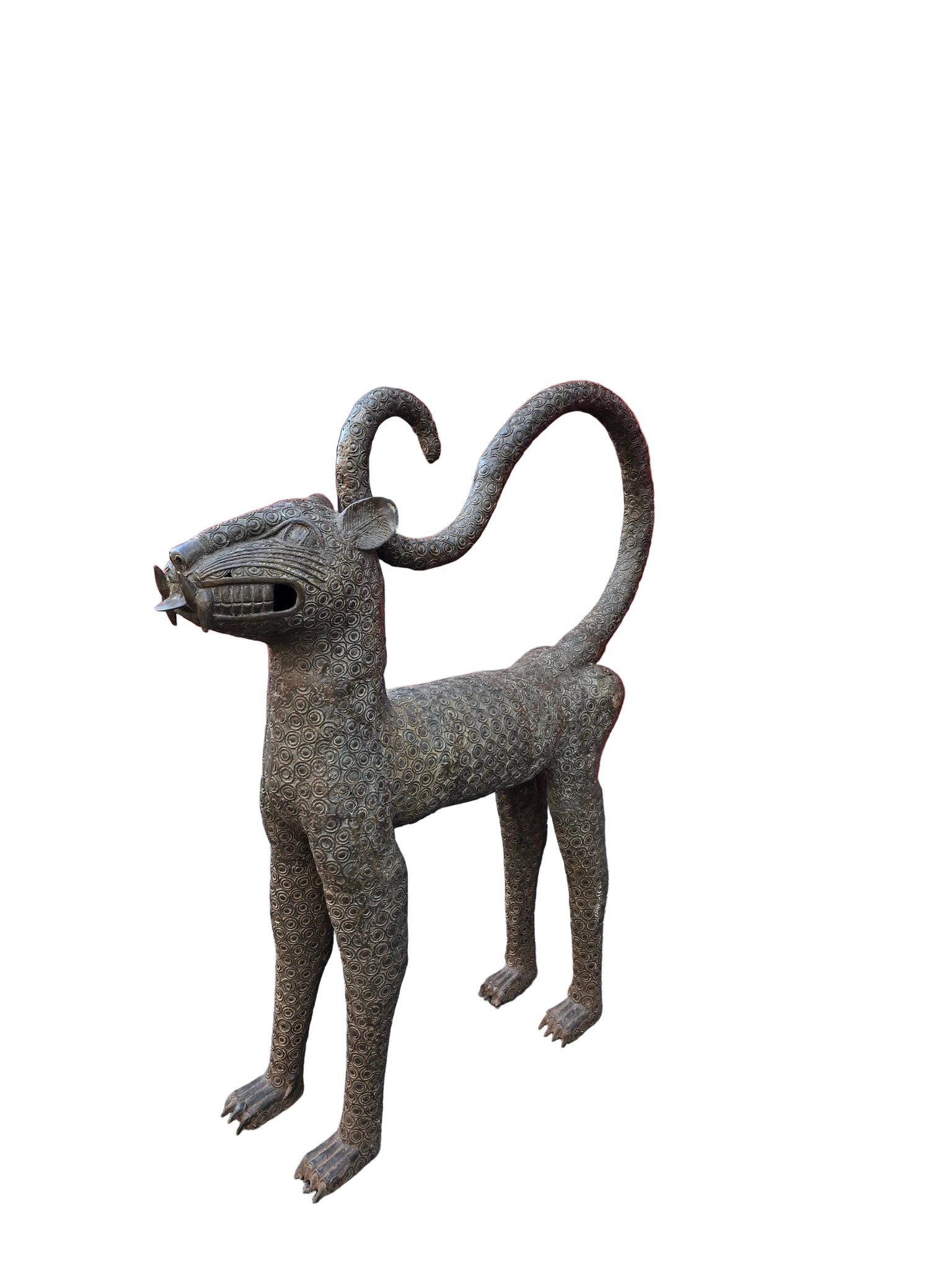 This impressive sculpture depicts a leopard, one of the most powerful and symbolic animals of the Kingdom of Benin. It originates from ancient Benin City, the historic capital of this renowned African empire (present-day Nigeria).