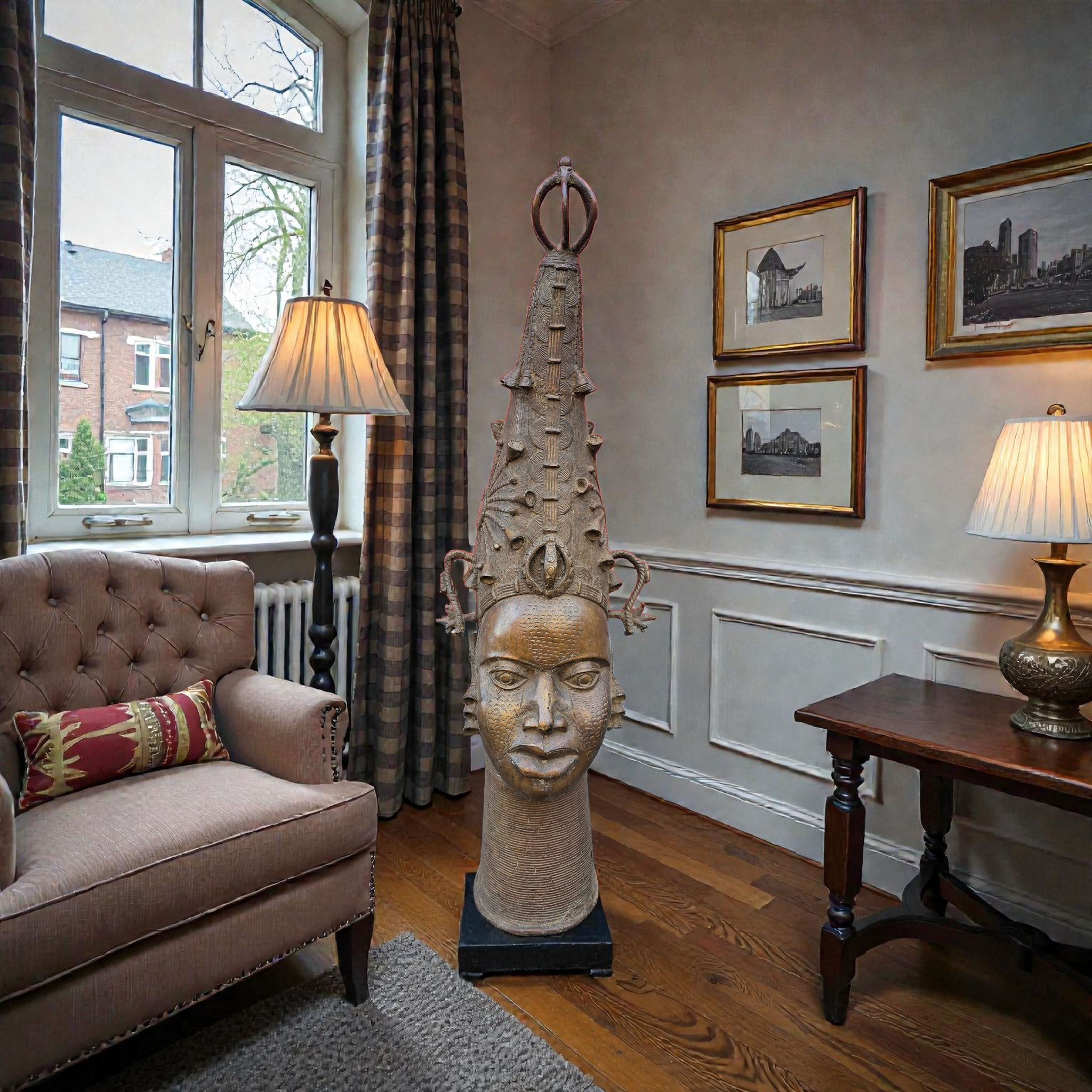 Benin Royal Bronze Head with Monumental Ceremonial Headdress