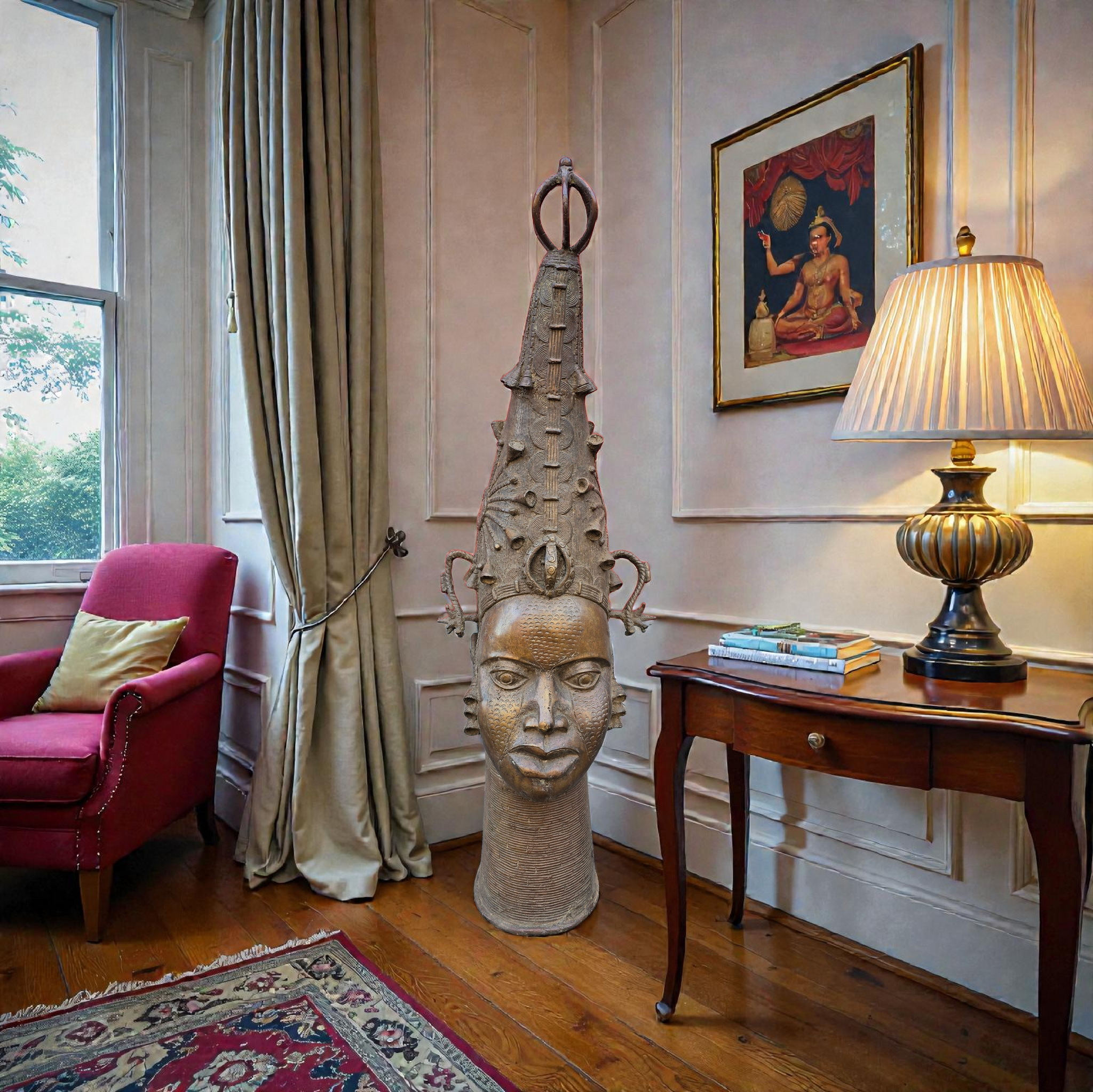 Cast in bronze using the traditional lost-wax technique, this work demonstrates a very high level of metallurgical and artistic expertise, historically reserved for royal workshops serving the Oba, the king of Benin. Each piece is inherently unique.